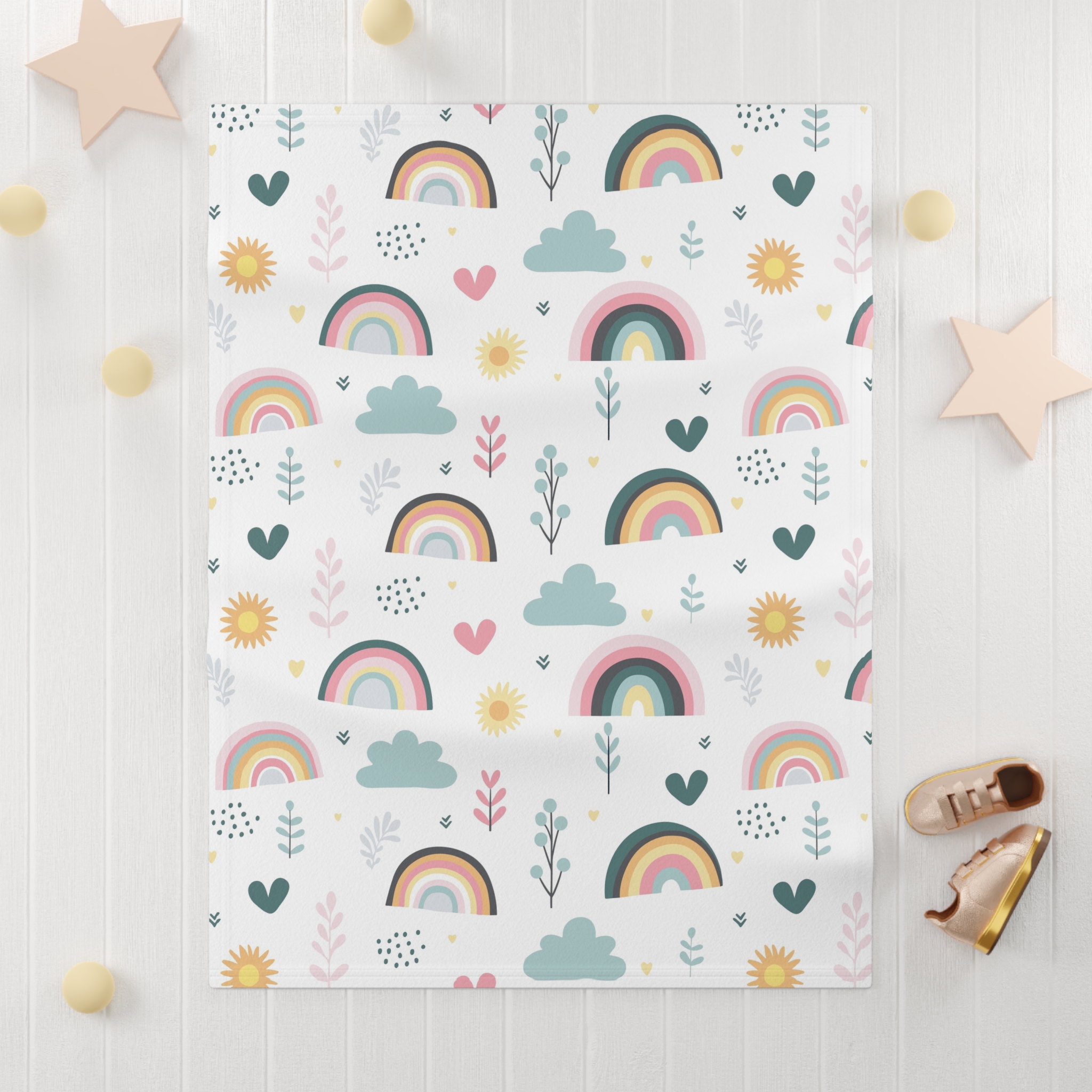 Snuggle your little one in warmth and style with this adorable Soft Fleece Baby Blanket. Perfect for adding a touch of comfort to any nursery or playroom, this cozy blanket features a whimsical, colorful design with rainbows, clouds, and cheerful flowers. It’s the ideal gift for new parents or baby showers, and it brings an uplifting vibe to storytime or cuddle sessions. Whether it’s used during chilly nights or as a playful addition to a stroller for daytime outings, this blanket is sure to be a cherished accessory for both babies and parents alike. Celebrate milestones like birthdays, holidays, or simply those quiet moments of connection with this delightful item, sure to bring joy to any child’s environment.