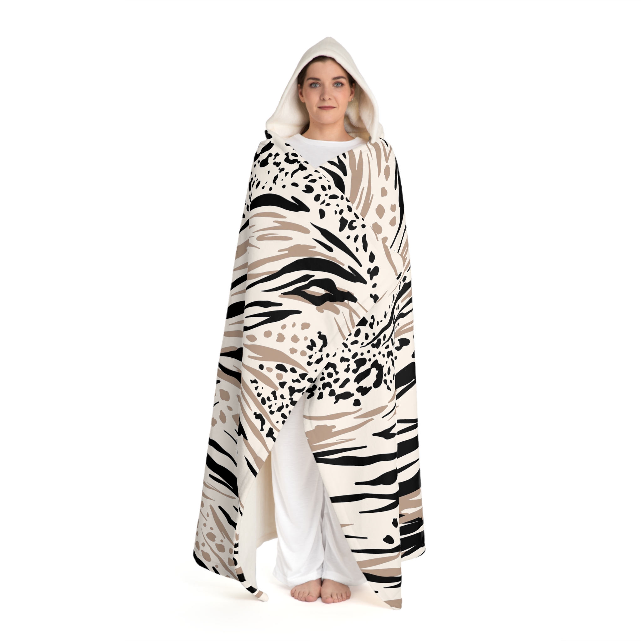 Indulge in cozy comfort with our Hooded Sherpa Fleece Blanket. This blanket envelops you in plush softness, making it the perfect companion for chilly nights and lazy afternoons. Its stylish design, featuring a sophisticated animal print, adds a touch of elegance to any living space, whether you’re snuggling up on the couch or lounging in bed. Ideal for anyone seeking warmth and style, this blanket is perfect for movie nights, reading sessions, or simply relaxing at home. It’s also a thoughtful gift for holidays, birthdays, or cozy celebrations. Embrace warmth and style with this versatile addition to your home decor!